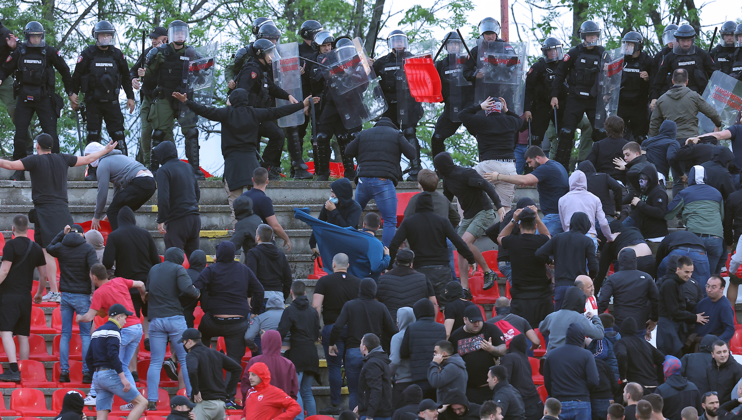 U prvi mah, nije bilo jasno šta je uzrok ove nagle i masovne reakcije, ali su ubrzo društvene mreže i navijački forumi počeli da preplavljuju snimci i informacije koje ukazuju da je došlo do tenzija između navijača i pripadnika Žandarmerije, koji su bili raspoređeni u tom sektoru.