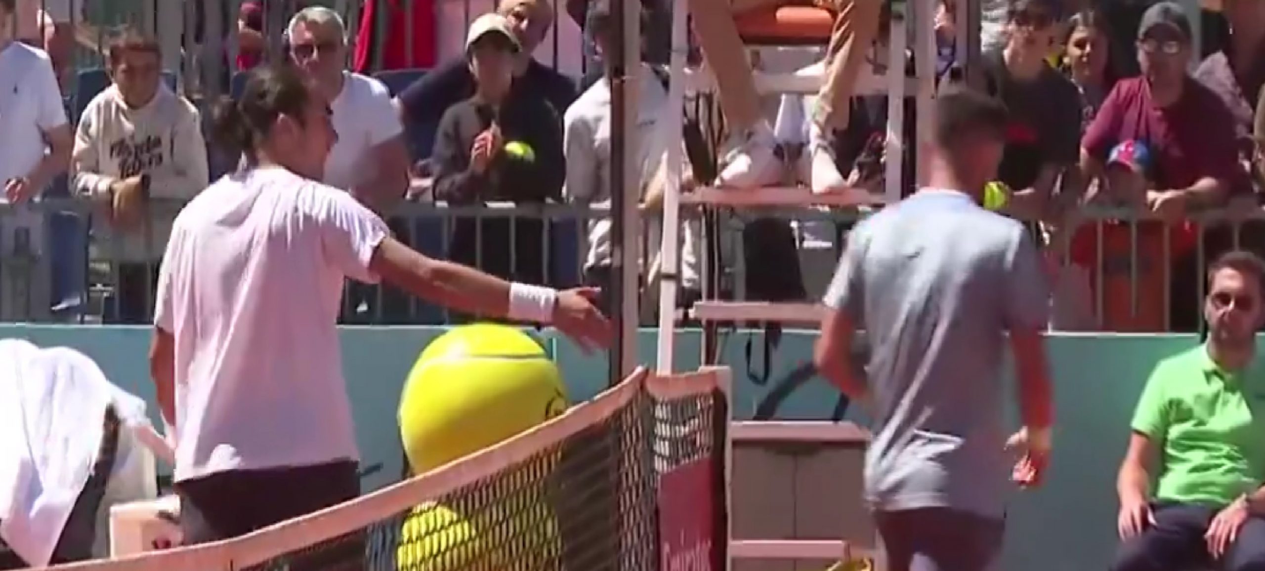 Damir Dzumhur & Mattia Bellucci with an awkward net exchange after their match in Madrid