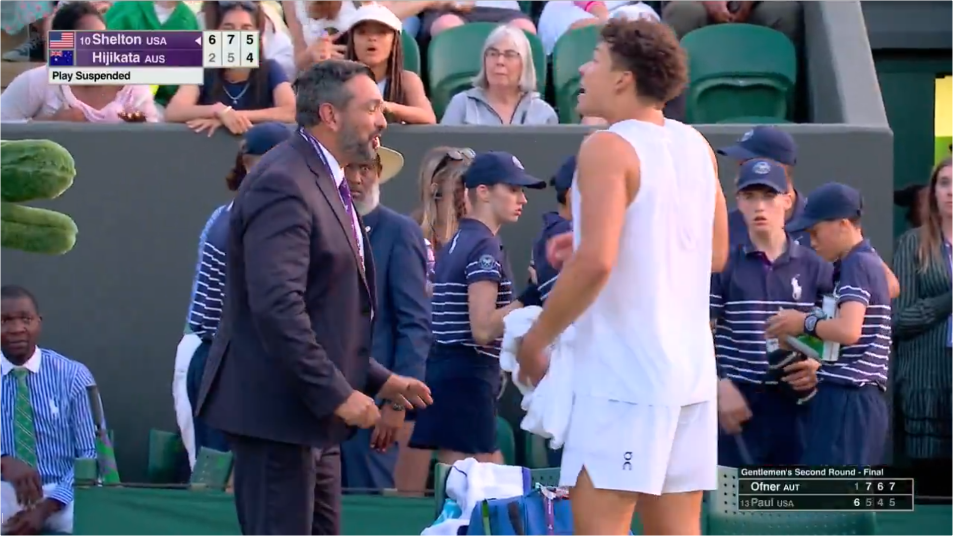 Da situacija bude neverovatnija, kada je Ben Šelton morao da servira za pobedu njemu je to uskraćeno, jer je u poslednjem gemu pri rezultatu 5:4 sudija sada napokon odlučio da otakže meč.