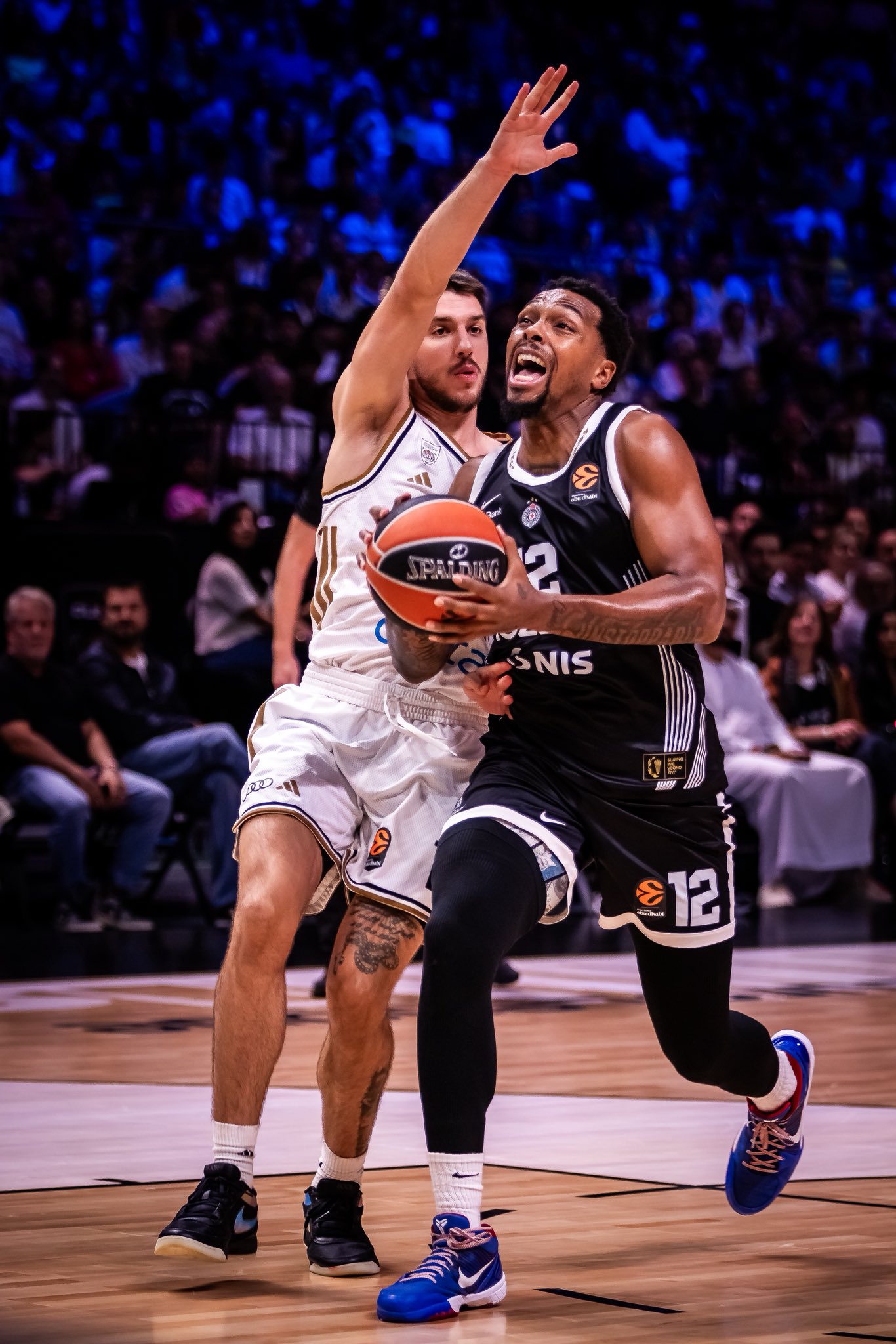 Sve je počelo furiozno za tim iz Emirata – Davis Bertans je zatrpavao koš Partizana, ubacio čak 11 poena za pet minuta, dok su ga u stopu pratili Džanan Musa i Dvejn Bejkon. Trojke su pljuštale iz svih pozicija, a Partizan je teško pratio taj ritam.
