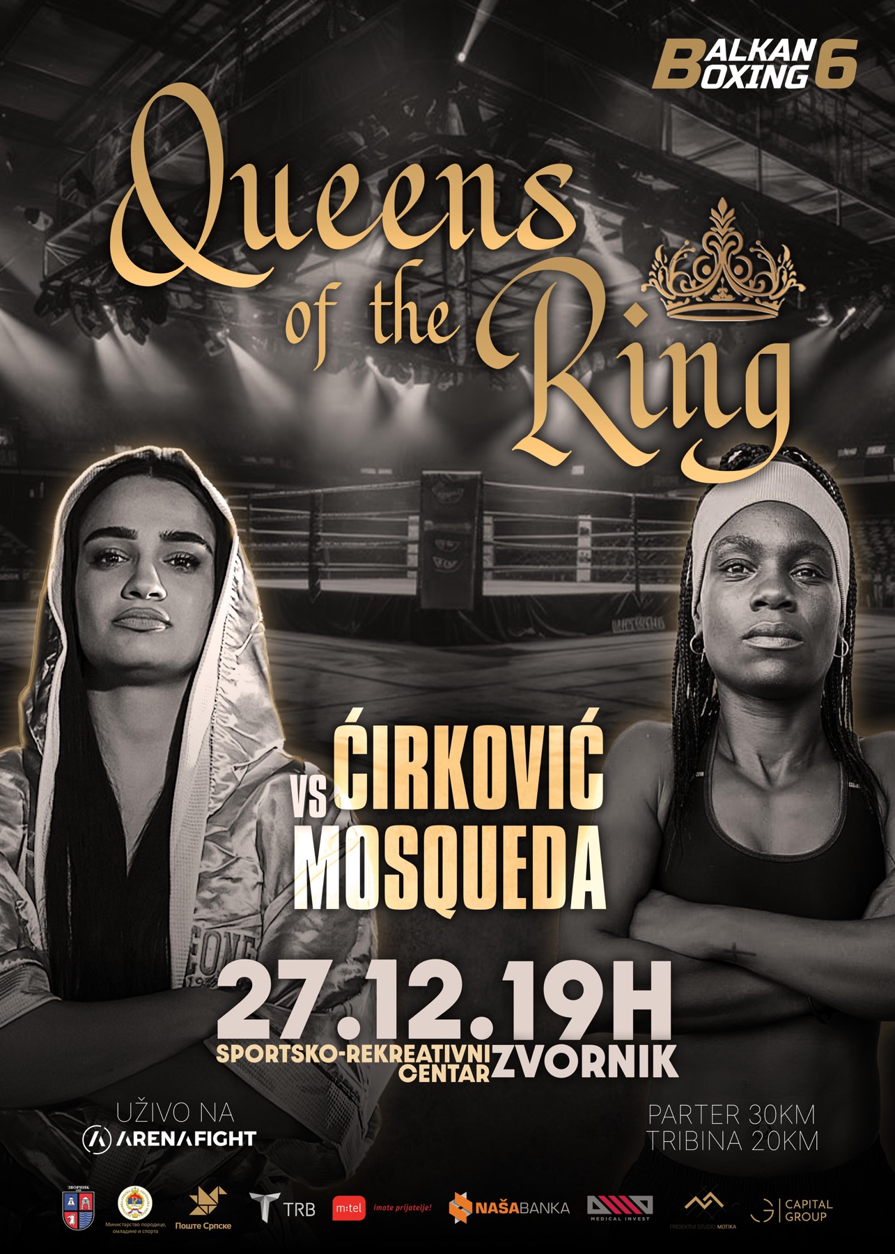 Bokserska gala noć u organizaciji Balkan Boxing-a pod nazivom „Queens of the ring“ gradu na reci Drini u glavnoj borbi donosi nam sudar naše Sare Ćirković (2-0) u meču bantam kategorije (do 53.5 kg) protiv Sajde Moskiere (10-6-1, 7 KO). Sajda je u svojoj karijeri u svom vlasništvu imala i WBC Latino titulu i očekuje se odličan meč. Boks spektakl u Zvorniku uživo će prenositi TV Arena Fight, a u uvodnom programu borbi ljubitelji plemenite veštine moće će uživati i u mečevima srpskih reprezentativki, takođe velikih šampionki: Natalije Šadrine, Kristine Kuluhove i Anastasije Bošković.