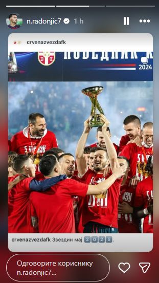 U iščekivanju prvog okupljanja crveno-belih pod vođstvom novog trenera Dejana Stankovića, zakazanog za subotu, 3. januara, Radonjić je putem Instagram profila ponovo potvrdio privrženost klubu.