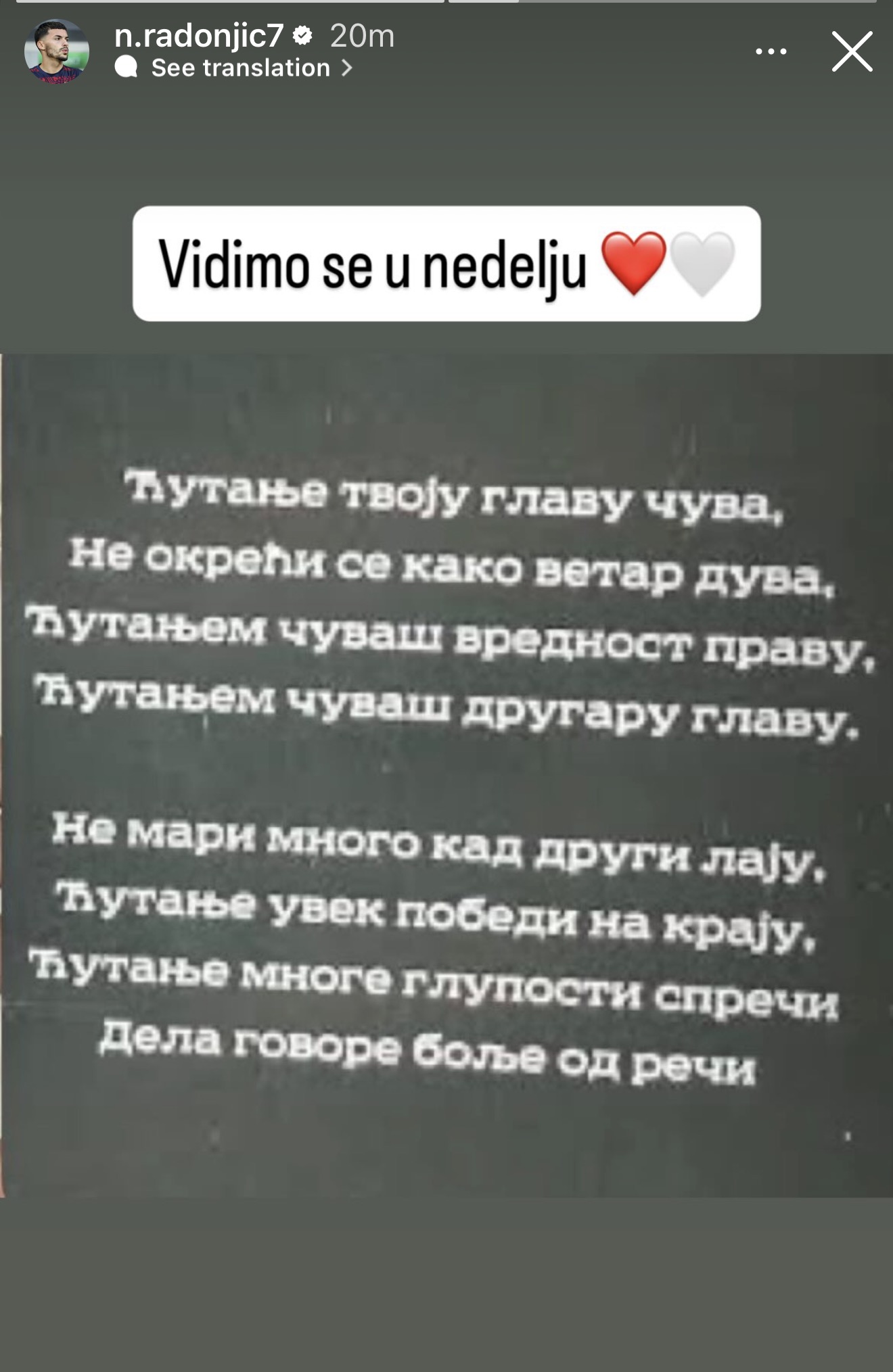 Nemanja Radonjić se i sam oglasio na svom Instagramu. Naime, srpski fudbaler je objavio Instagram stori na kojem je u crveno-beloj opremi, uz samo jedan emotikon.
