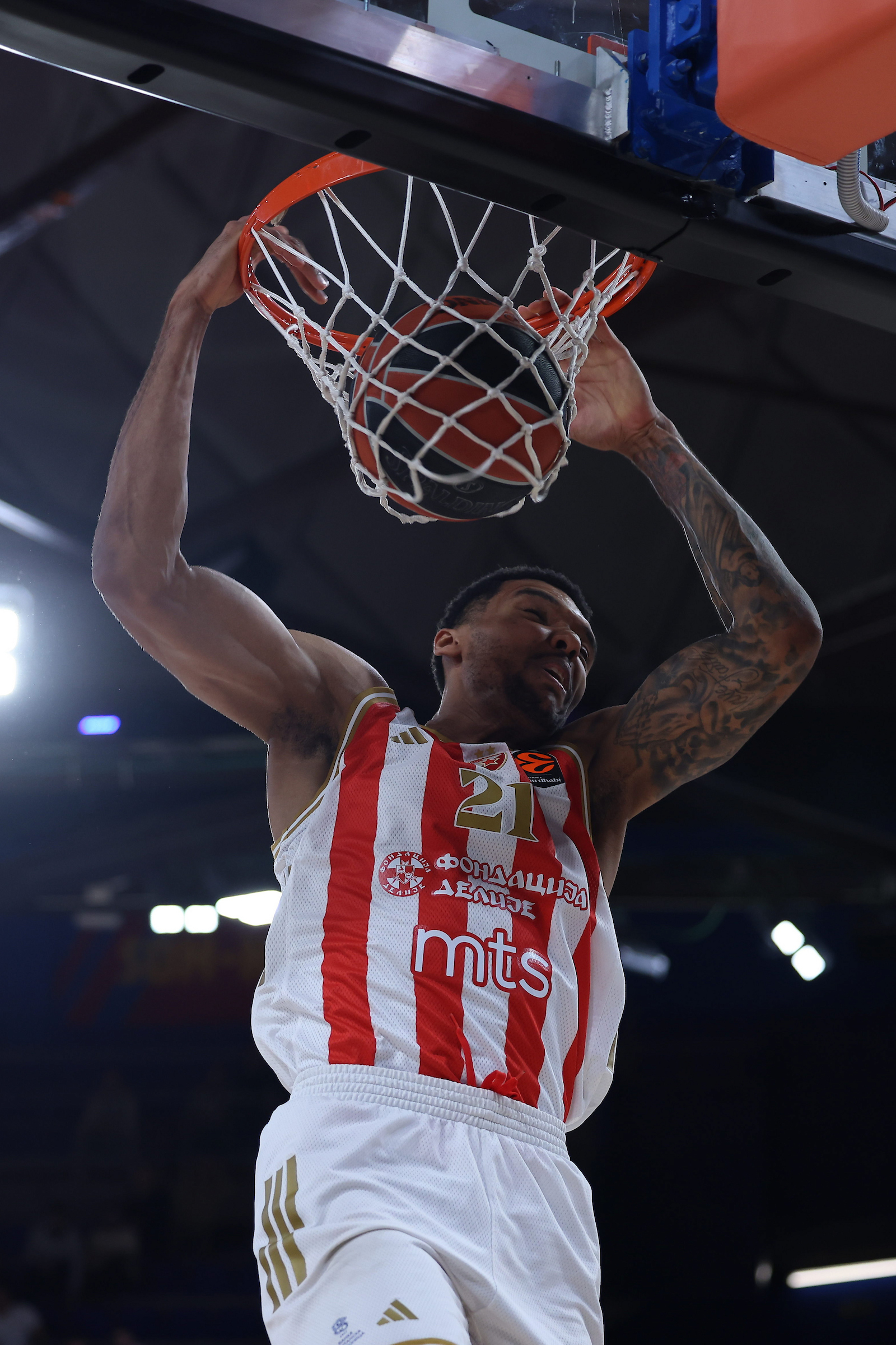 Utakmica počinje, a prvi napad ima Crvena zvezda nakon što je Bolomboj bio bolji u skoku. Crveno-beli odmah ulaze agresivno u meč — Čima Moneke prodire i postiže poene pod obručem, a potom se ističe i Bolomboj, najpre u odbrani zaustavlja Šengeliju, a zatim dolazi i do poena u napadu. Zvezda vodi 4:0.