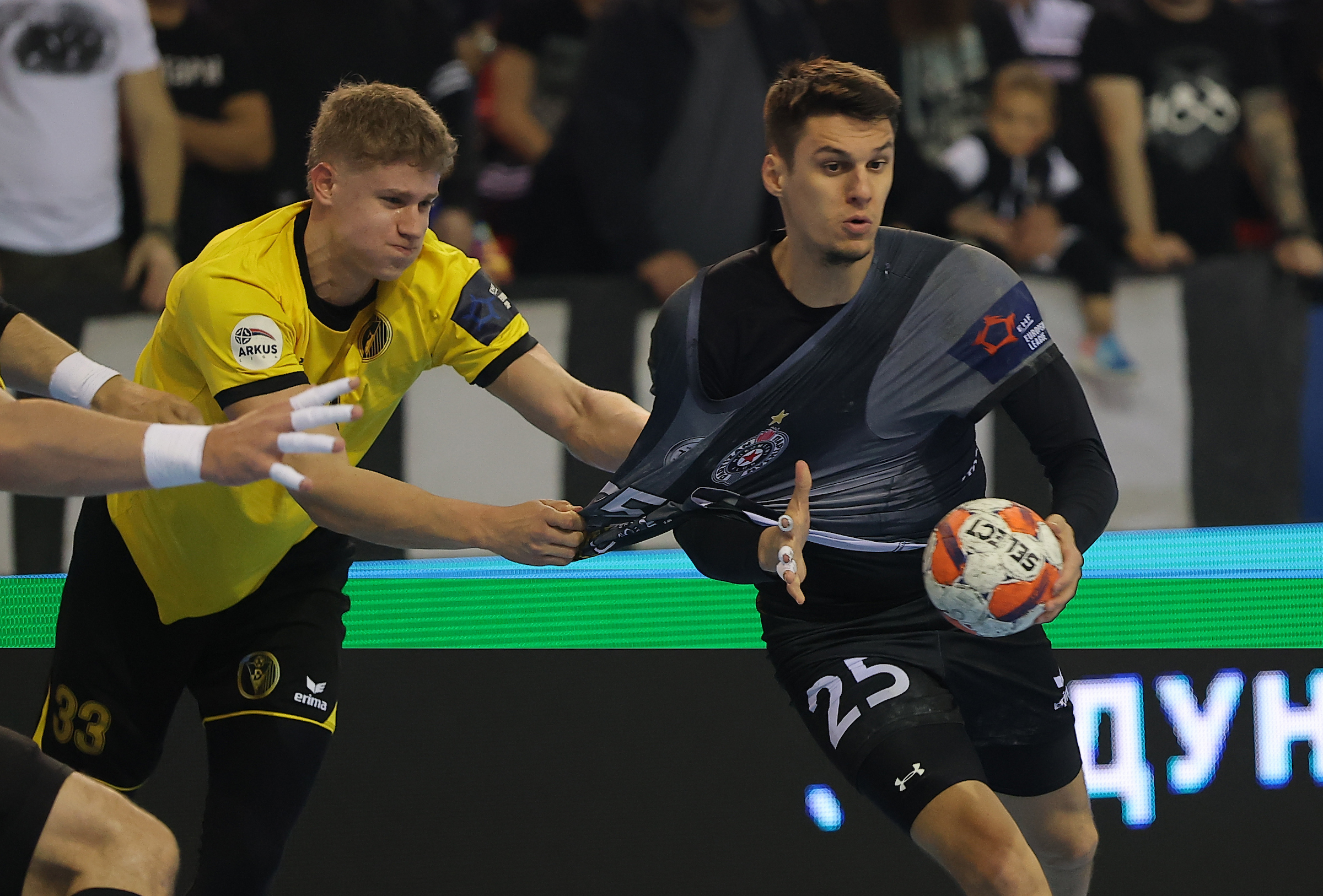 Ekipa iz Pančeva bolje je otvorila utakmicu i imala prednost u uvodnim minutima, ali je Partizan sredinom prvog poluvremena napravio ključni preokret. Serijom od šest uzastopnih golova crno-beli su preuzeli kontrolu i do odlaska na odmor izgradili prednost od četiri gola – 18:14.