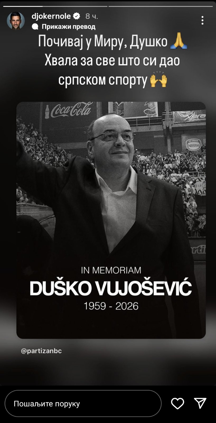 „Počivaj u miru, Duško. Hvala za sve što si dao srpskom sportu“, napisao je Đoković.