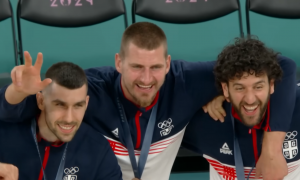 PONOSNO UZ TRI PRSTA: Nikola Jokić podigao atmosferu na dodeli bronze! (VIDEO) Olimpijske igre Pariz 2024 10:24 11.08.2024.